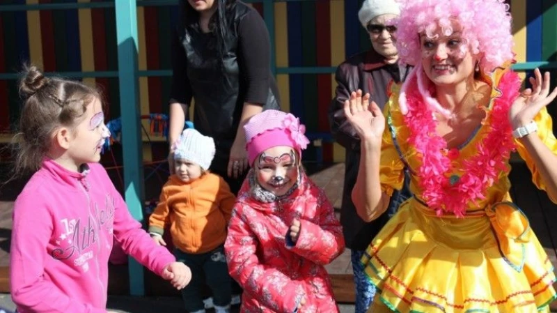 На площадке собрались дети разных возрастов, для них выступали артисты, прошли веселые игры с аниматорами.