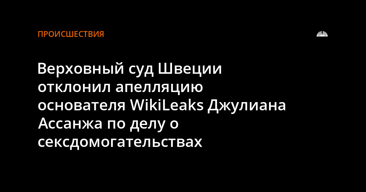 Как сообщает polit.ru, Верховный суд Швеции отклонил апелляцию основателя WikiLeaks Джулиана Ассанжа. Онтребовал аннулировать ордер на его задержание в связи с обвинениями в сексуальном посягательстве.