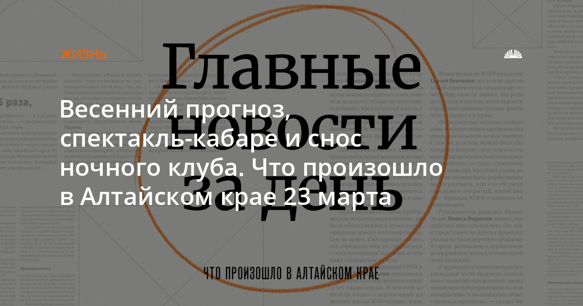Весенний прогноз, спектакль-кабаре и снос ночного клуба. Что произошло в Алтайском крае 23 марта