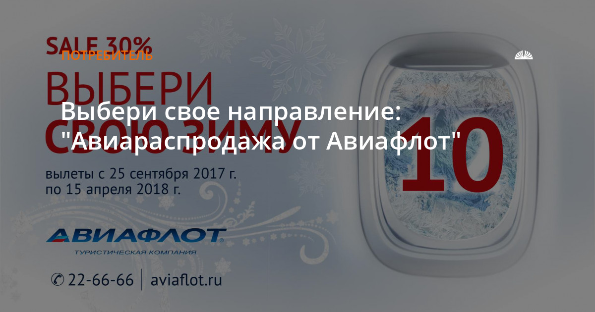 Организатор акции ООО "Авиафлот". Срок действия акции: с 25 сентября по 8 октября 2017 года. Подробности акции по тел 22-66-66