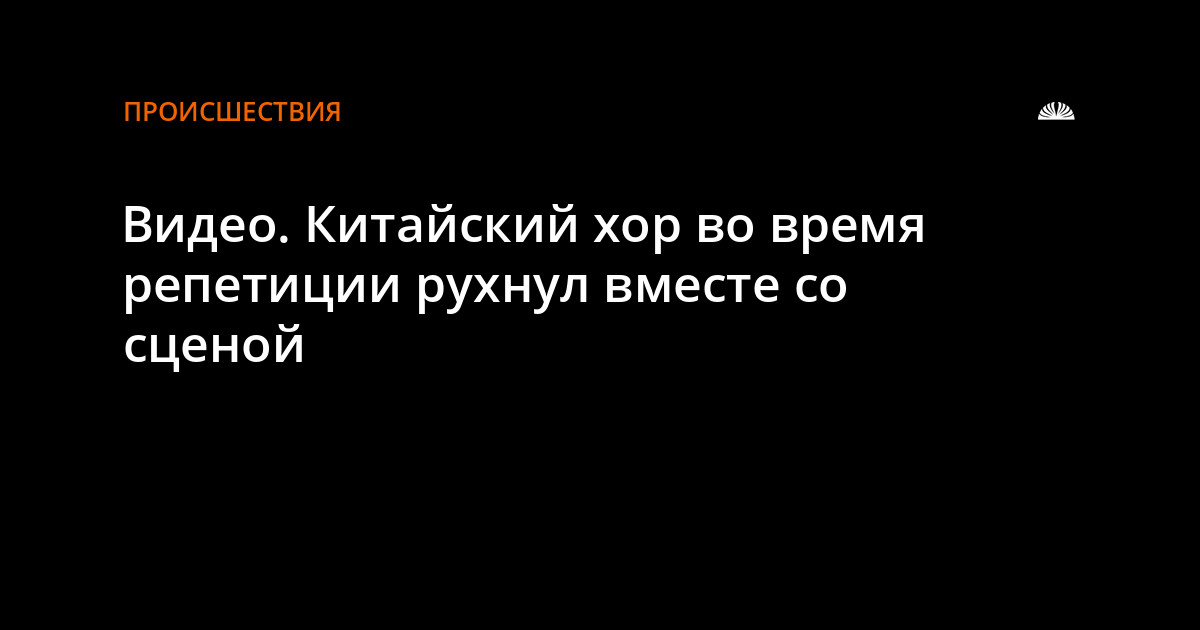 В одном из китайских театров произошло ЧП - во время репетиции песни на сцене хор провалился вместе со сценой. Руководитель хора в течение нескольких секунд продолжал дирижировать.