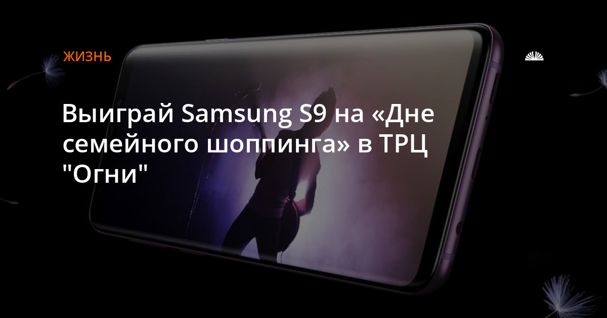 - Присутствовать на розыгрыше Samsung S9 и других призов от арендаторов торгового центра на вечерней части "Дня семейного шоппинга" с 18.00.