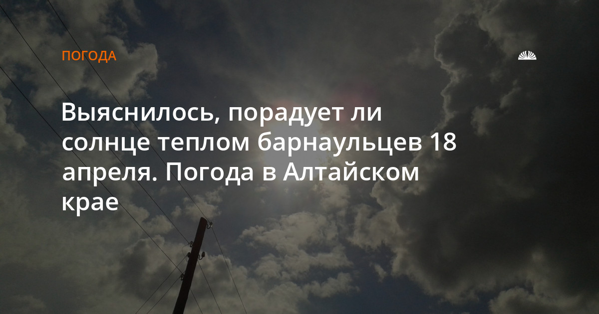 Выяснилось, порадует ли солнце теплом барнаульцев 18 апреля. Погода в Алтайском крае