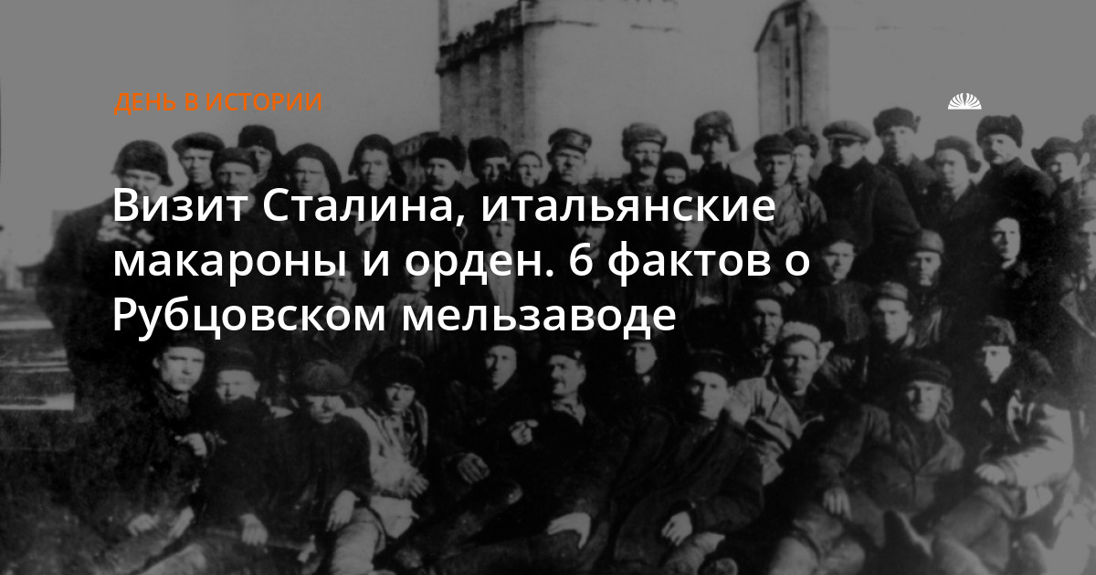 1. Предприятие было основано 19 декабря 1932 года по решению Совета Народных Комиссаров, после того, как в октябре 1928 года Рубцовск посетила правительственная делегация во главе с И. В. Сталиным. Поводом для поездки в Сибирь стали продовольственные трудности в стране.