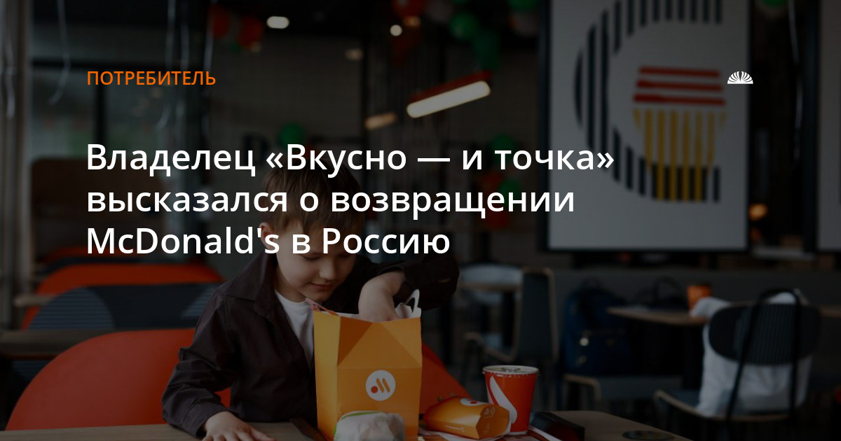 Владелец «Вкусно — и точка» высказался о возвращении McDonald's в Россию