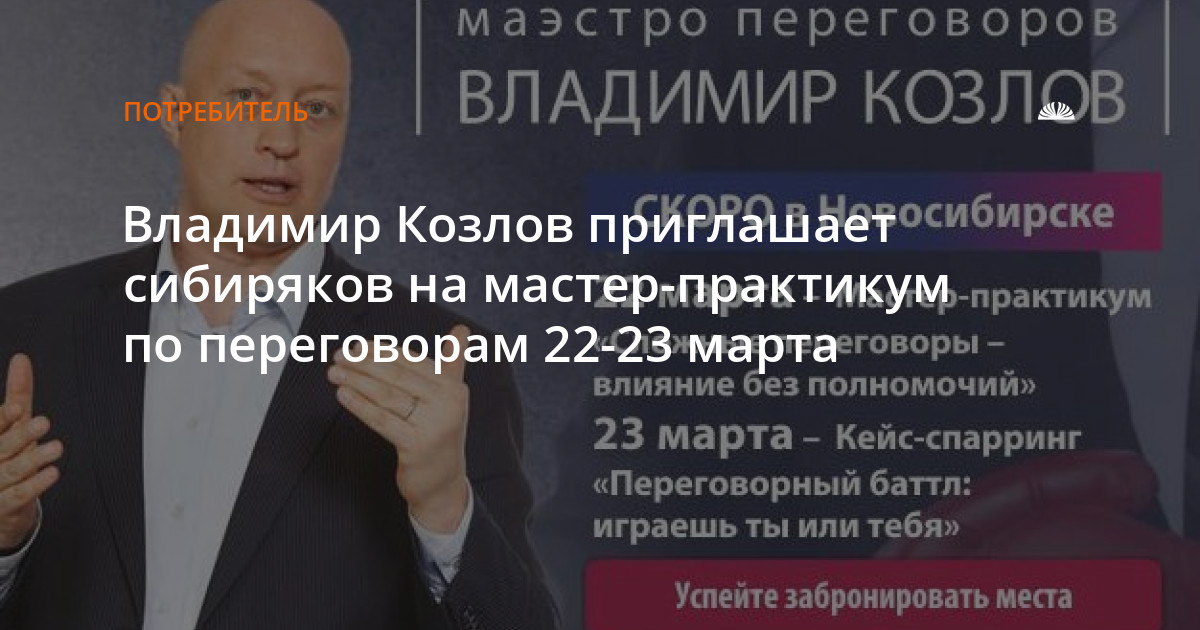Друзья, у всех, кто участвует в переговорах, от собственников компаний до специалистов коммерческих подразделений, будет уникальная возможность 22-23 марта в Новосибирске принять участие в мастер-практикуме Владимира Козлова, пополнить свой багаж знаний и получить новые навыки по ведению переговоров на разных уровнях. А также продемонстрировать свое мастерство в переговорных баттлах. Регистрация участников близится к завершению. Не откладывайте свое решение по участию на последний день, бронируйте места заранее.