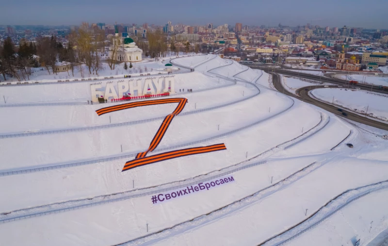 В пятницу утром, 4 марта, в Нагорном парке рядом с буквами «БАРНАУЛ» появилась выложенная на снегу георгиевскими лентами буква "Z".
