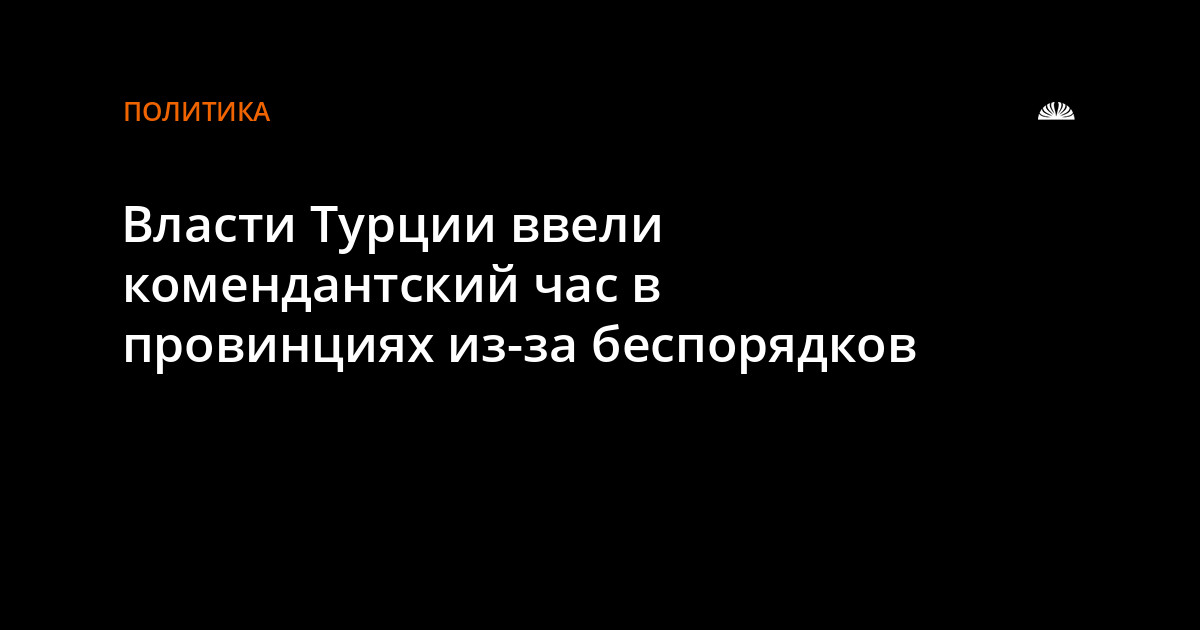 Власти Турции ввели комендантский час в провинциях из-за беспорядков. Поступили сообщения о девяти погибших. Как передаёт телеканал Press TV, после этого управления безопасности шести провинций ввели комендантский час. Ограничения на пребывание на улице после определенного часа введены в провинциях Диярбакыр, Мардин, Сиирт, Муш, Ван, Батма, где протесты и беспорядки приобрели опасную форму. Как сообщают местные СМИ, группы молодых людей громят магазины, забрасывают полицию, здания и автомобили камнями и бутылками с зажигательной смесью.