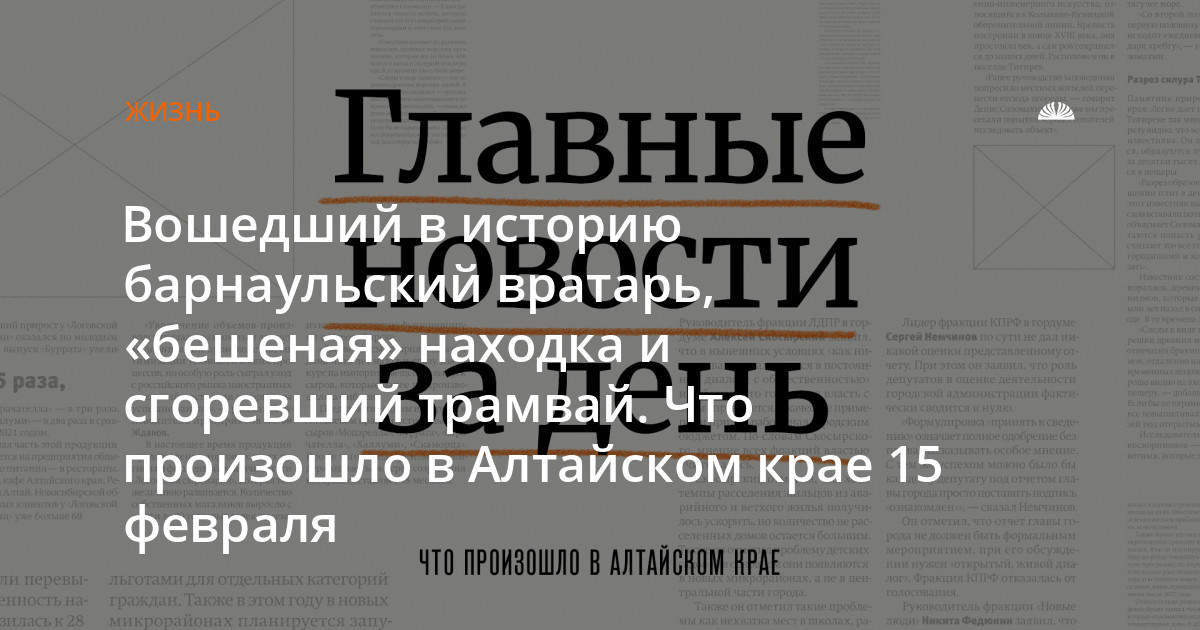 Вошедший в историю барнаульский вратарь, «бешеная» находка и сгоревший трамвай. Что произошло в Алтайском крае 15 февраля