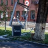Удар стихии пришелся на другую часть парка. На лестнице со стороны города сломаны металлическое ограждение и скамейка. Вероятно, на них с большой силой отбросило одно из деревьев. Большую ветку также отнесло ветром на фонарь. После дождя на лестнице скользко, на плитках образовались лужи.