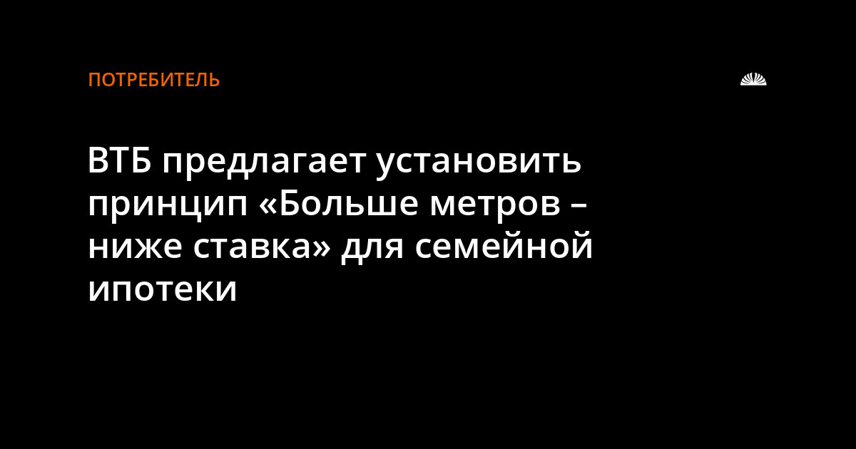 «Для покупки квартир большой площади российским семьям нужен серьезный стимул, которым может стать принцип дифференцированной ипотечной ставки. По семейной ипотеке ставка с нынешних 6% может быть снижена, к примеру, на 1 пункт. Это особенно актуально при рождении детей и дополнительных расходах. В ВТБ каждая десятая ипотечная сделка банка приходилась на квартиры от 65 «квадратов» в рамках программы «Больше метров – ниже ставка». Заемщики снижают свой регулярный платеж, меньше тратят на переплату и в конечном счете – могут позволить себе жить в просторных квартирах, где у каждого ребенка будет свое личное пространство для жизни и развития. Застройщикам это позволит планировать квартиры большей площади уже на этапе проектировки возводимого дома, чтобы обеспечить своих клиентов качественным новым жильем», – комментирует Анатолий Печатников.