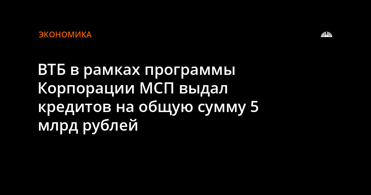 Банк ВТБ в рамках Программы стимулирования кредитования субъектов МСП (Программа 6,5), реализуемой Корпорацией МСП совместно с Банком России, за полгода заключил кредитные соглашения с 50 компаниями среднего бизнеса на общую сумму 10 млрд. рублей, из которых уже выдано кредитов на сумму 5 млрд. рублей. По данным Корпорации МСП банк ВТБ является абсолютным лидером по объему выданных кредитных средств бизнесу в рамках льготной программы финансирования.