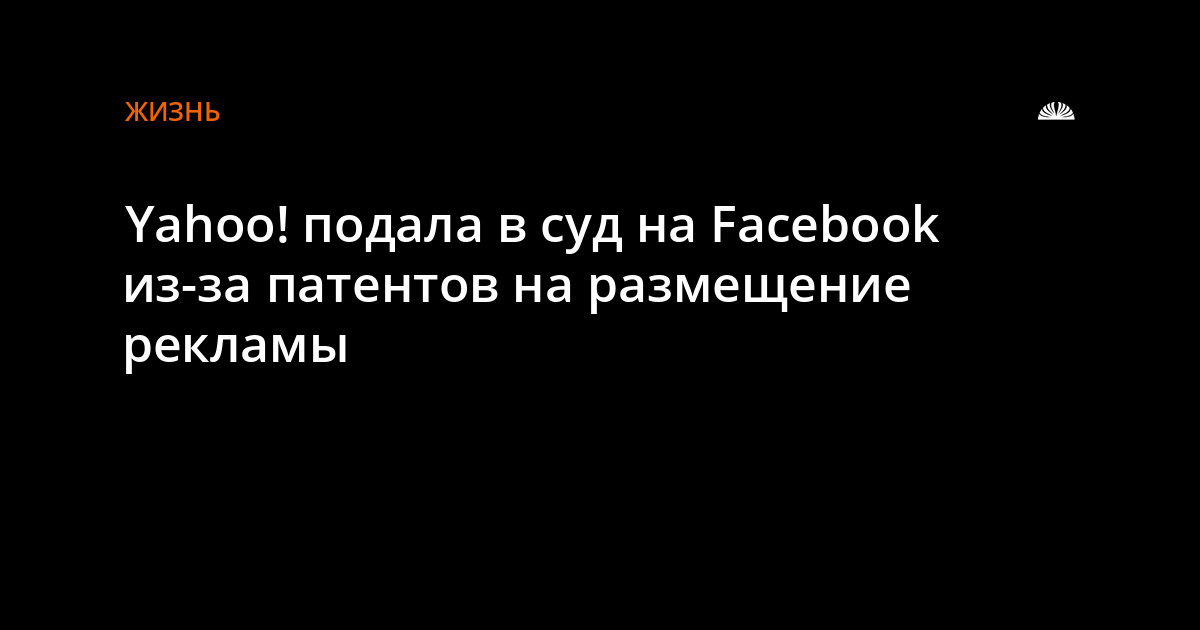 Речь идет о запатентованных Yahoo! методах и способах размещения рекламы в интернете. Иск был подан в суд калифорнийского города Сан-Хосе 12 марта. "Мы разочарованы, что Yahoo! – наш партнер на протяжении многих лет, и компания, которая только выиграла от своего сотрудничества с нами, решила заняться судебными тяжбами", – заявил официальный представитель Facebook.