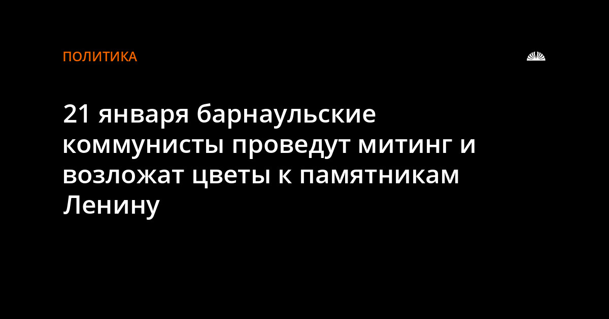 21 января на площади Советов у памятника Владимиру Ленину в 13-00 Барнаульский городской комитет КПРФ организует митинг посвященный теме: "Ленин и современность". Как сообщает пресс-служба Барнаульского горкома КПРФ, акция приурочена к 89-й годовщине со дня смерти основателя советского государства.