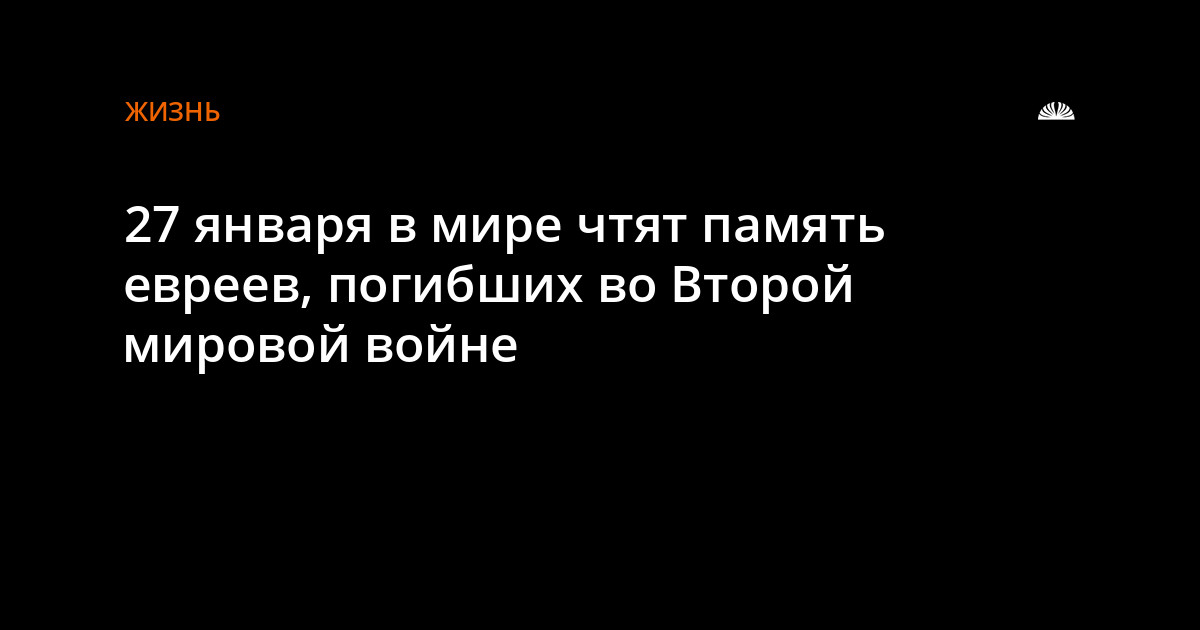 27 января в мире чтят память евреев, погибших во Второй мировой войне: этот день указом Генассамблеи ООН объявлен Международным днем памяти жертв Холокоста, сообщает "МИР 24".