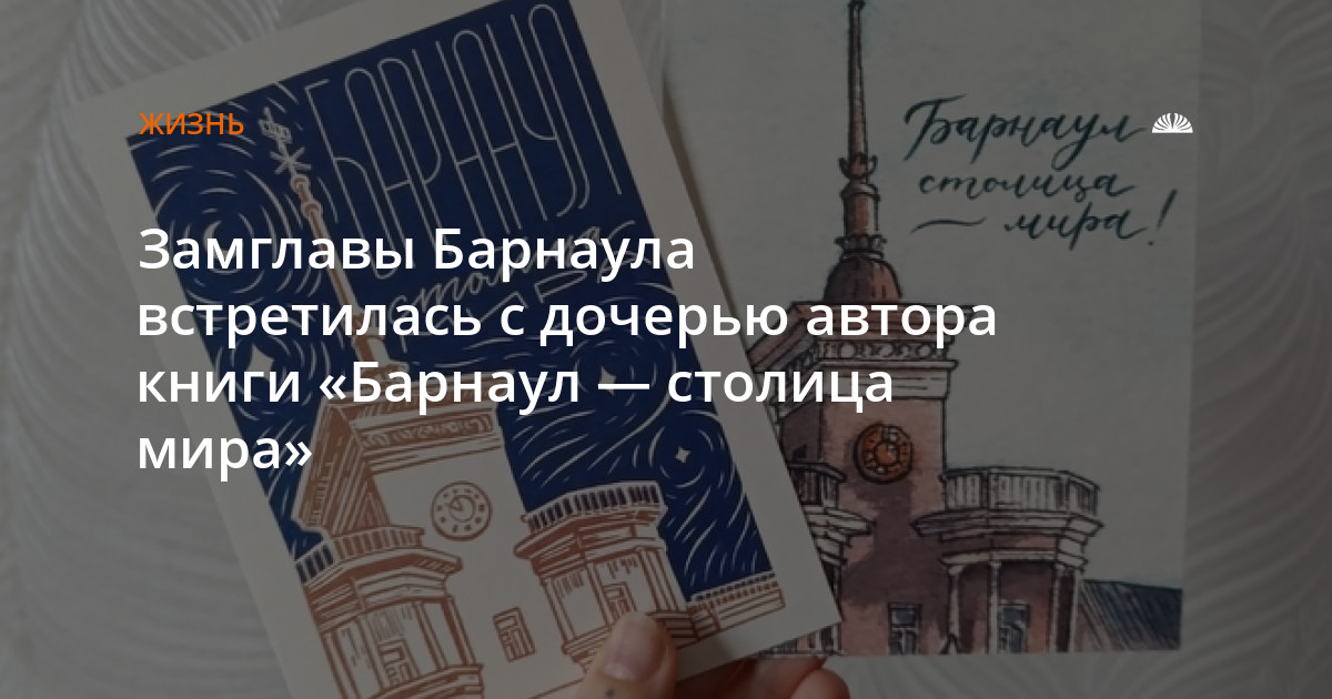 «Мои знакомые начали мне скидывать ссылки на публикации, где говорилось, что знаменитая фраза «Барнаул — столица мира», которая является названием книги моего отца, была запатентована. Но мой отец всегда был против формализации этой фразы. Он считал, что она должна быть свободной и принадлежать горожанам», — заявила она.