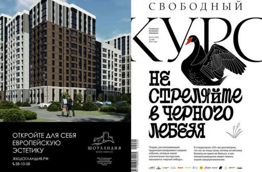 Термин «черный лебедь» взят в основу креативной концепции обложки. Термин обозначает теорию глобальных событий, которые никто не ожидал. В спецвыпуске рассматривается, что это за птица такая, почему алтайскому бизнесу не стоит её бояться.
