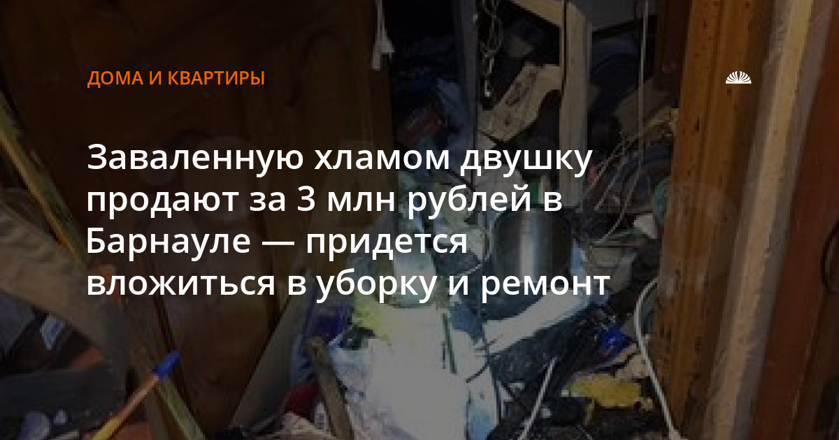 Заваленную хламом двушку продают за 3 млн рублей в Барнауле.
