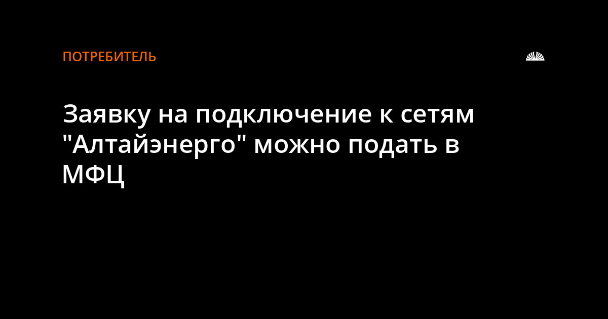 Воспользоваться услугой подачи заявки на технологическое присоединение к электрическим сетям филиала МРСК Сибири – "Алтайэнерго" можно в следующих отделениях МФЦ: