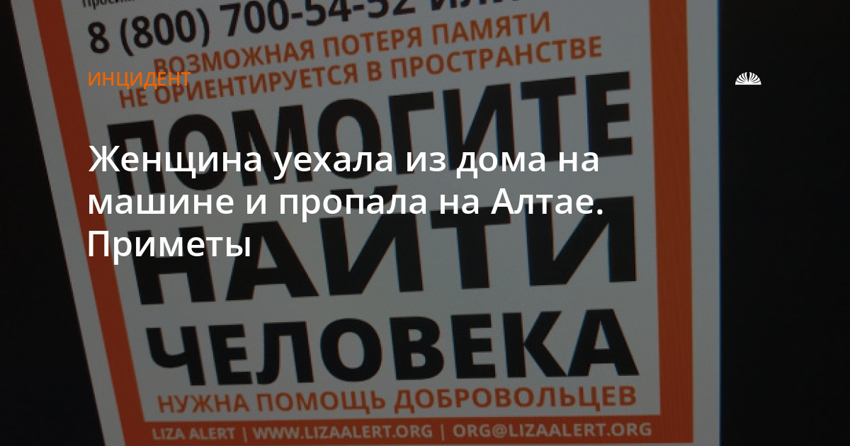 Пропала женщина в Республике Алтай.