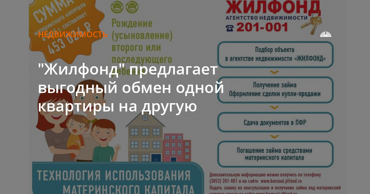 Услуга предоставляется клиентам, одновременно продающим и покупающим недвижимость через агентство недвижимости "Жилфонд". Подробную информацию об условиях можно получить в барнаульских офисах агентства недвижимости "Жилфонд" и по тел. в Барнауле: (3852) 201-001. Заемные средства предоставляются ООО "Жилфонд Бизнес". Предложение не является публичной офертой.