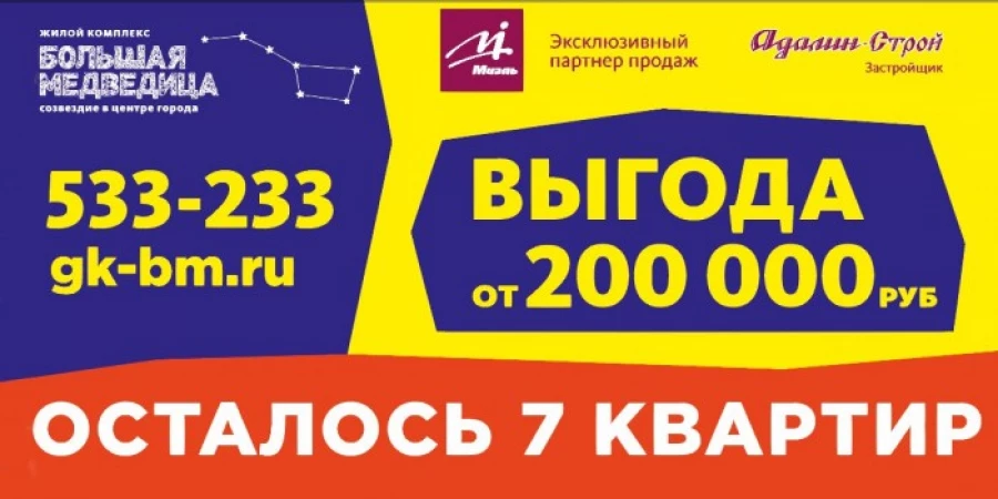 Подробнее о новом предложении и жилом комплексе узнавайте по телефону 533-233 или на сайте gk-bm.ru. "Большая Медведица" в соцсетях: "ВКонтакте", "Одноклассники", "Фейсбук".