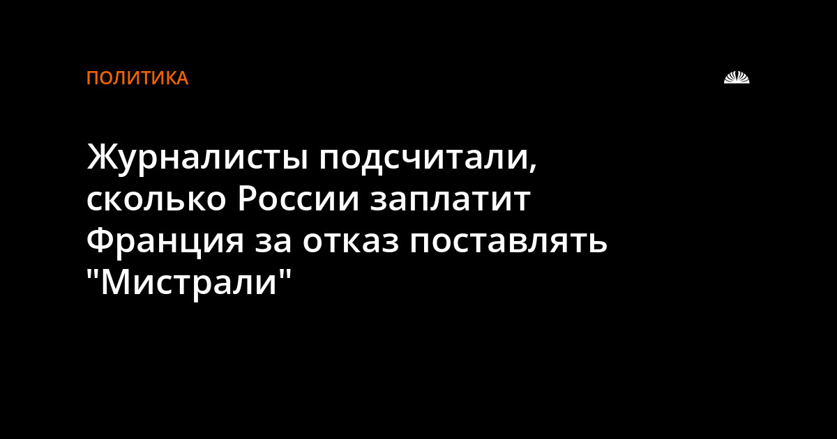 Согласно подсчётам журналистов, если Париж в итоге действительно разорвет контракт с Россией, то сначала нужно будет вернуть 1,2 миллиарда евро (цену строительства двух "Мистралей"), после чего российская сторона ещё будет вправе потребовать компенсацию: по 800 миллионов евро за каждый корабль.