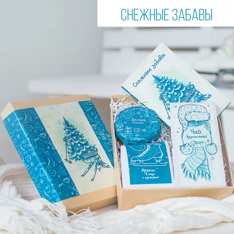 Набор Снежные забавы поможет вам сотворить сказку своими руками - внутри вы найдете все необходимое: буклет с подробными схемами и инструкциями по строительству снежной крепости, созданию снежного тира и снежных фигур; брусничный чай, отлично согревающий и восстанавливающий силы; вкусный облепиховый десерт и сладкое лакомство, арахис в шоколаде, который создаст хорошее настроение для замечательной зимней забавы.