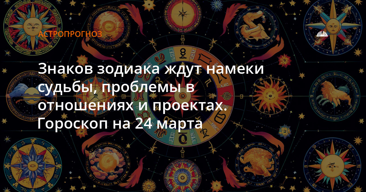 Знаков зодиака ждут намеки судьбы, проблемы в отношениях и проектах. Гороскоп на 24 марта
