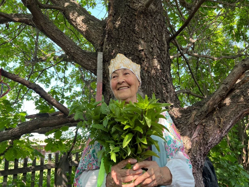 «Да не надо меня от солнца зонтиком прикрывать – мне же не 90. Всего 82», - женщина берет столетнюю деревянную ложку и бодро идет к казану на костре. Мы в Нижнекаменке, в огороде у Мины Карабановой.