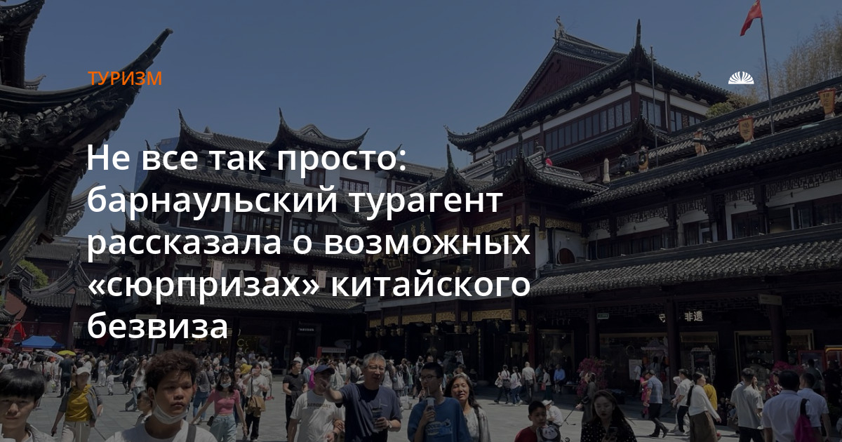 Прежде всего потому что основная доля барнаульских туристов летит на Хайнань – на острове и ранее действовал безвизовый режим. Так же с одним загранпаспортом в материковую часть страны отправляли туристов в составе организованных групп.