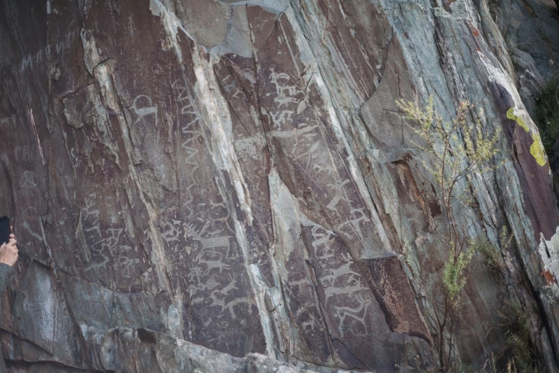 Этот археологический комплекс располагается на правом берегу Чуи. На плоских скалах бома собрана коллекция порядка трех тысяч наскальных изображений от эпохи неолита (6-4 тыс. лет до н.э.). Здесь же находятся 30 строк уникальных рунических надписей — это самое большое скопление рунического текста в России.
