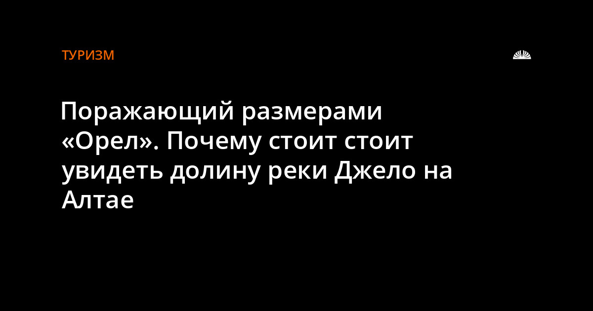 - Долина реки Джело — примечательный уголок Центрального Алтая. По форме она напоминает силуэт птицы и, кстати, «Джело» с алтайского — «белоголовый орел».