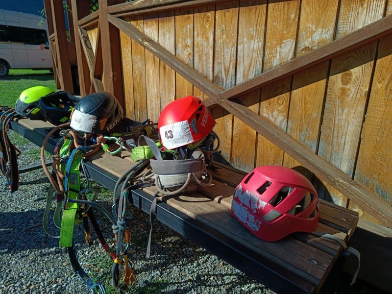 На всех этапах нас сопровождал инструктор-педагог Евгений Кривченко. С его помощь мы надели страховочные системы для спортивного туризма; «Обмундирование предназначено для безопасности и оно всегда обязательно».