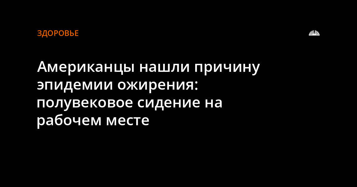 Как сообщает портал "Ньюсмикс", исследование, проведенное учеными США, показало, что за нынешнюю эпидемию ожирения во многом ответственно снижение физической активности на рабочем месте, неуклонно продолжающееся в течение полувека Исследование, по мнению его авторов, ясно дает понять, что одними только изменениями в количестве потребляемых калорий невозможно объяснить массовое ожирение населения, от которого те же США страдают последние 30 с лишним лет.