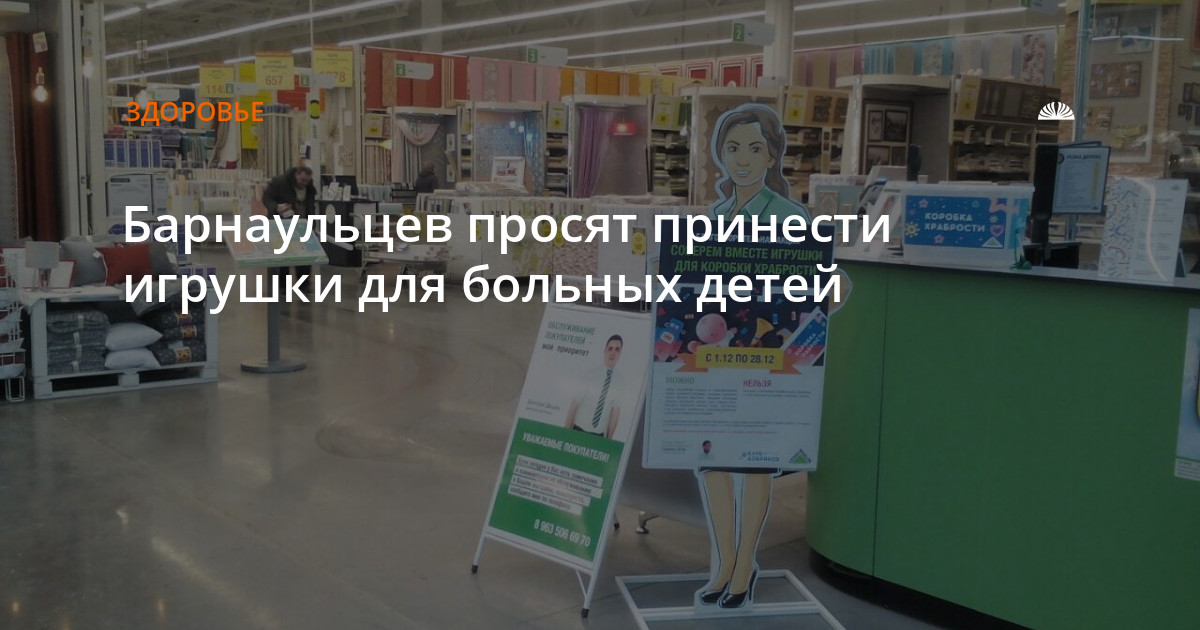 Любой житель может принять участие в акции. Для этого надо принести игрушки и положить их в коробку храбрости гипермаркете "Леруа Мерлен" (Павловский тракт, 192а).
