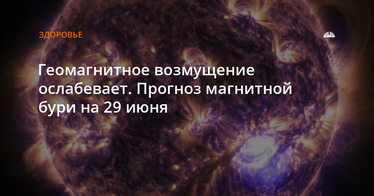 29 июня ожидается спокойная магнитная обстановка. Слабое возмущение будет достигать от одного до трех баллов. Это смогут почувствовать только метеозависимые люди.