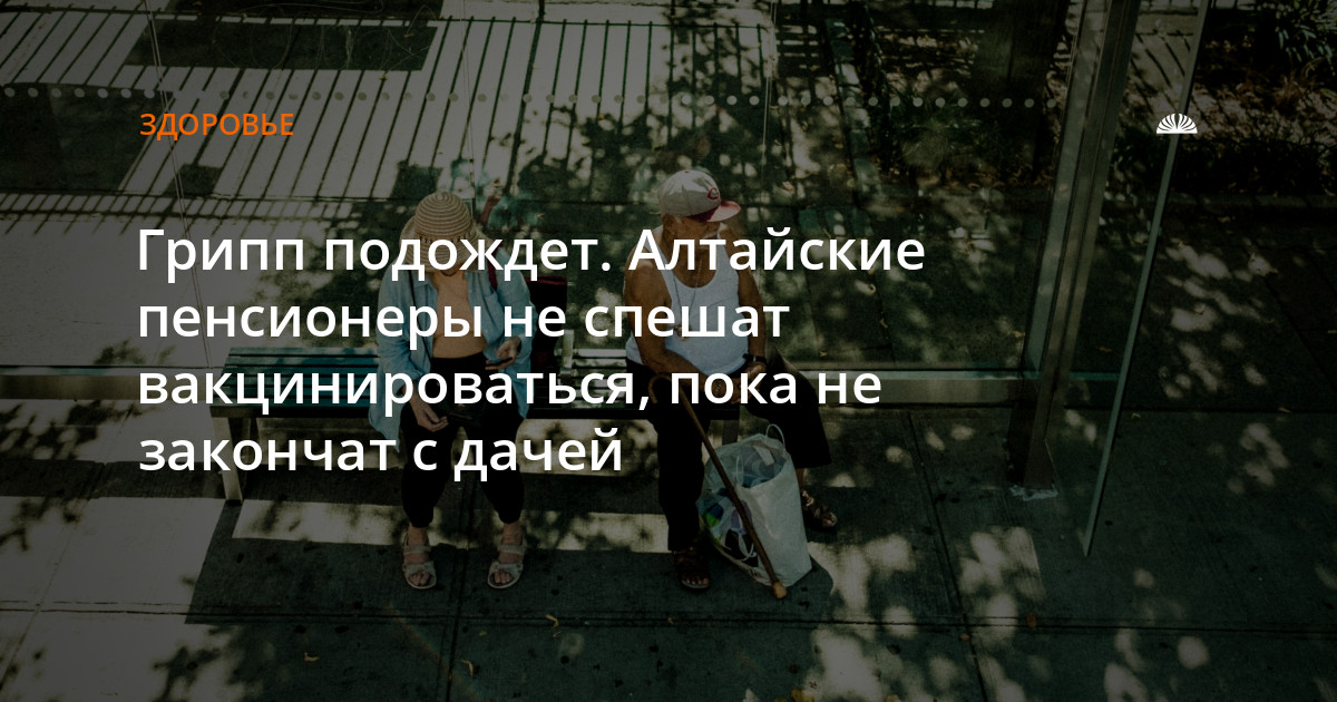 Прививочная кампания против гриппа стартовала в Алтайском крае 8 августа, и за месяц работы вакцину поставили более 135 тыс. человек в регионе. При этом врачи на удивление обнаружили, что среди пациентов почти не оказалось жителей старше 60 лет.