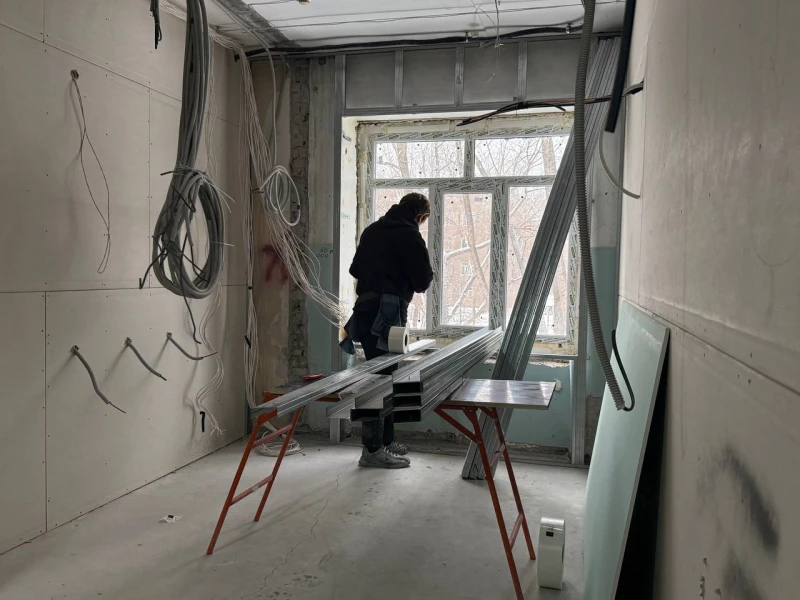 Сейчас строители приступили к устройству системы приточно-вытяжной вентиляции, которая регулирует частоту поток воздуха, создавая особую среду для инфекционного отделения. Андрей Захарченко заметил, что это один из самых сложных и ключевых аспектов объекта. «Можно сказать, что только ради него было начато масштабное переустройство», — сообщил начальник участка.
