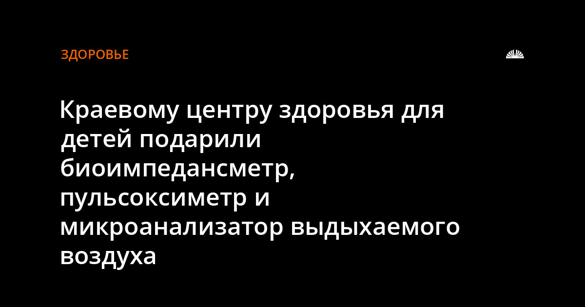 Алтайкрайздрав сообщил, что краевой центр здоровья для детей, расположенный в краевой детской клинической больницы, получил в подарок от компании "Алтайэнергосбыт" пассажирскую газель и диагностическое оборудование. Это биоимпедансметр для исследования внутренних сред организма - обмена веществ, пульсоксиметр для выявления патологии сердечно-сосудистой системы, ритмичности пульса и микро СО-анализатор газов в выдыхаемом воздухе для выявления курящих.