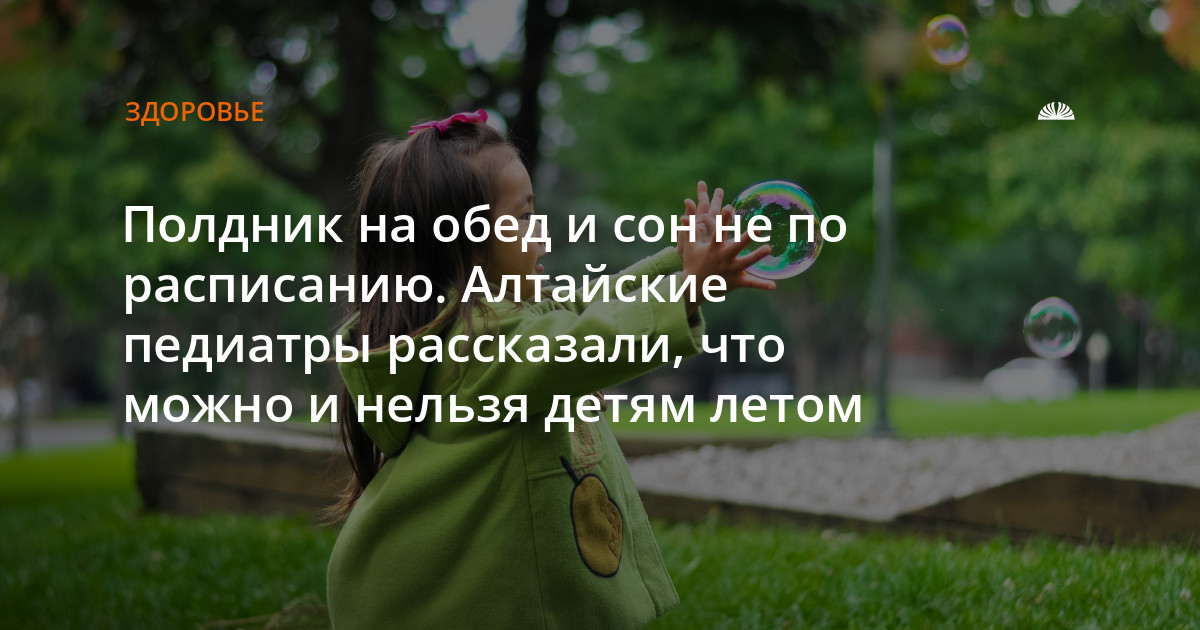 Можно даже поменять полдник и обед местами, советует врач. Это связано с тем, что в полдень солнце начинает греть особенно интенсивно, и детскому организму будет тяжело переварить калорийное блюдо. Поэтому в этот период лучше ограничиться легким перекусом. А когда жара спадет, полноценный белковый обед будет как раз кстати.