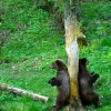 В Алтайском заповеднике засняли кадры, где выросшие медвежата демонстрируют медведице-матери свое умение оставлять метки на специальном дереве, словно сдавая важный экзамен.