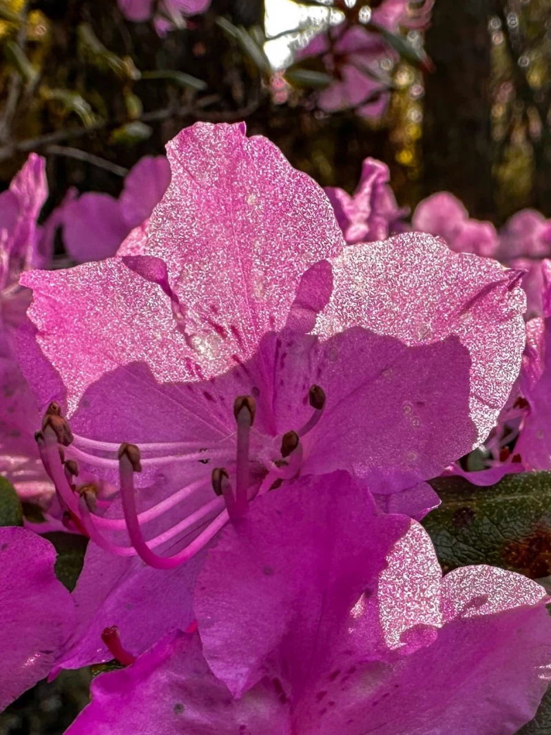 На берегах Телецкого озера невозможно увидеть сиреневых гор из рододендрона, как в других, менее суровых местах Горного Алтая. Зато есть возможность рассмотреть его в виде отдельных кустов, цветение которых означает наступление весны.