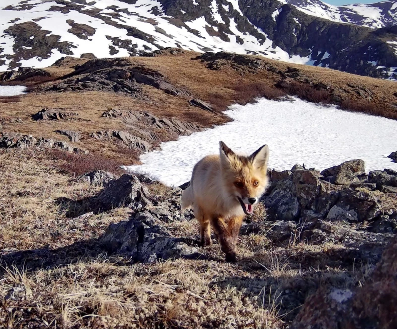 В мае бурые медведи и рыжие лисицы путешествуют по горным территориям Алтайского заповедника.