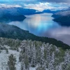 Окружавшие озеро горные вершины вновь покрылись свежевыпавшим снегом.
