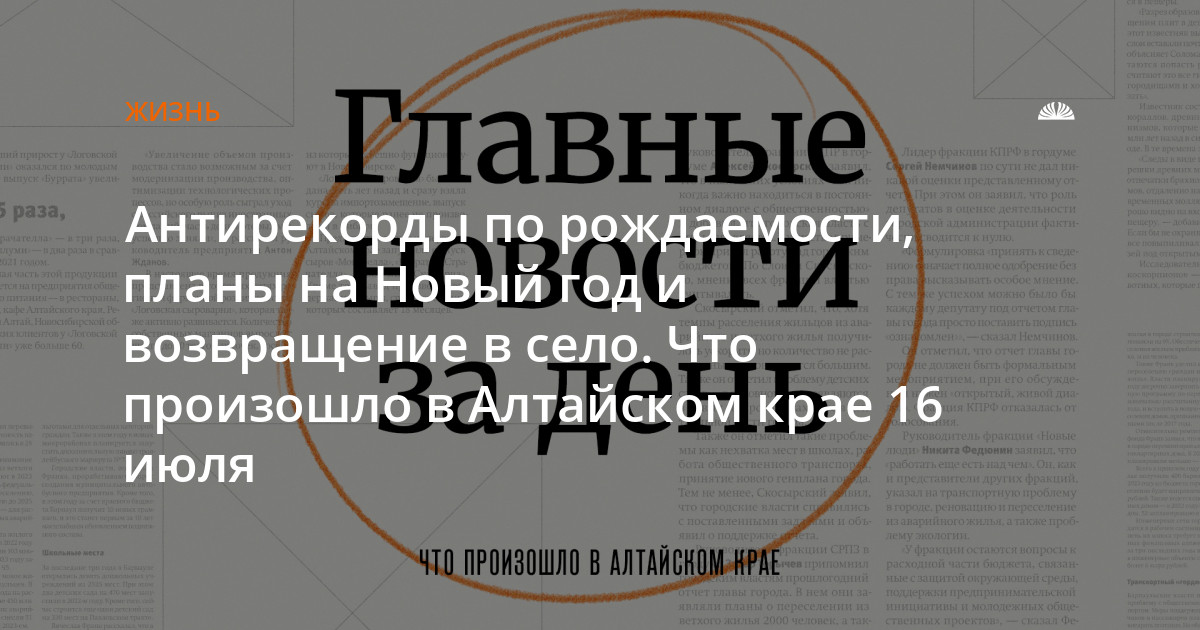 - Алтайский край бьет новые антирекорды по рождаемости — 2025-й не станет исключением. В Минздраве считают, что решить эту проблему поможет массовая репродуктивная диспансеризация, особенно среди мужчин.