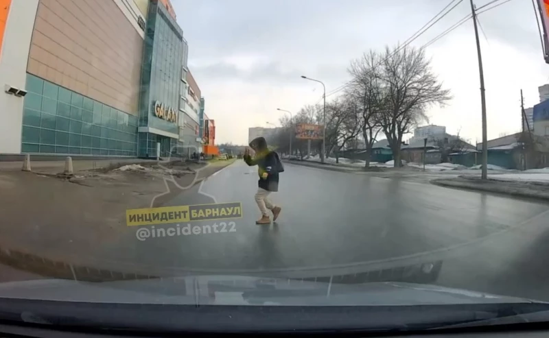 Бессмертный пешеход шел по проезжей части у ТРЦ "Galaxy".