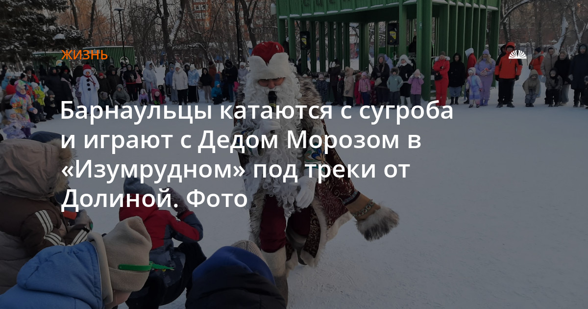 Дети катаются с сугробов по песню «Три белых коня» Долиной и наблюдают за сказочным представлением.