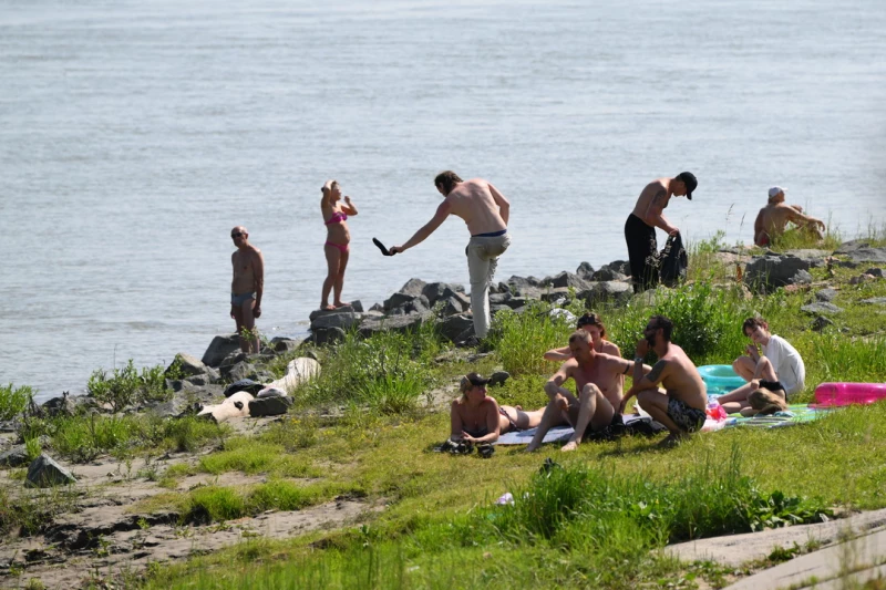 Уставшие от жары выбирают берег реки Обь возле Нового моста для отдыха и водных процедур. Здесь регулярно собираются любители позагорать и искупаться.
