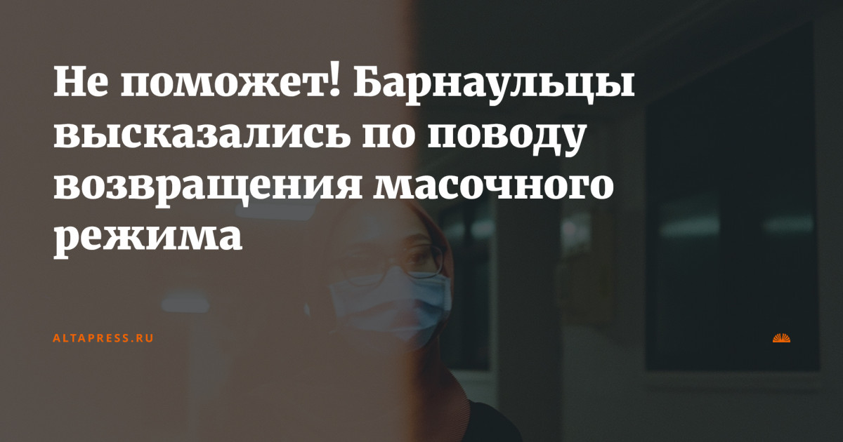 — Я против возвращения масочного режима: не считаю это целесообразным для всех. Уже доказано, что ношение маски необходимо заболевшему, чтобы не заражать остальных. А вот здоровым она не нужна, поскольку не способна остановить вирус.